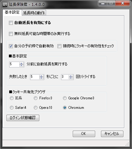 ・無料延長が可能な時間帯のみ延長操作を行うかどうかを設定できるようにした。