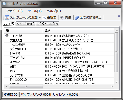 ■「radiko」を視聴、予約録音できる高性能クライアント「Radika」v1.02 公開