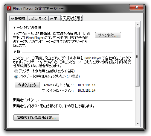 Adobe Flash Player v10.3.181.14 が公開されました(`・ω・´)