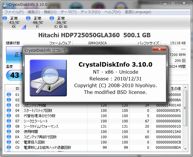 ■フリーのHDD検診ソフト「CrystalDiskInfo」v3.9.4 公開