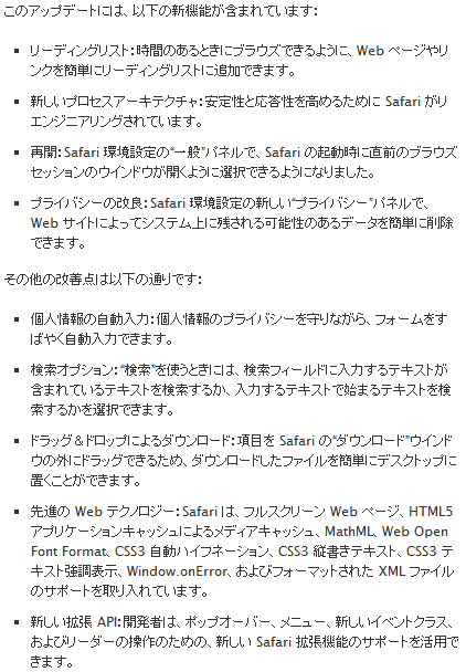 ■高速描写に長けたWebkit搭載Webブラウザー「Safari」v5.0.5 公開