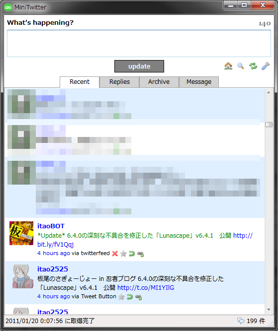 ■動作が軽快でシンプルなTwitterクライアントソフト「MiniTwitter」v1.66 公開