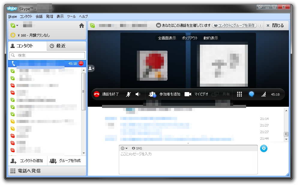 Skypeは1対1の通話の他に、十数人での会議通話、チャット、