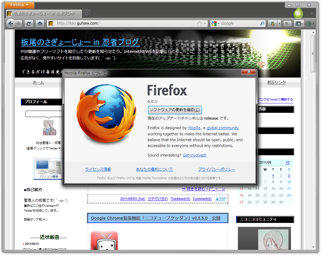 マイナーバージョンアップ。 Firefox v6.0.1 が公開されました(`・ω・´)