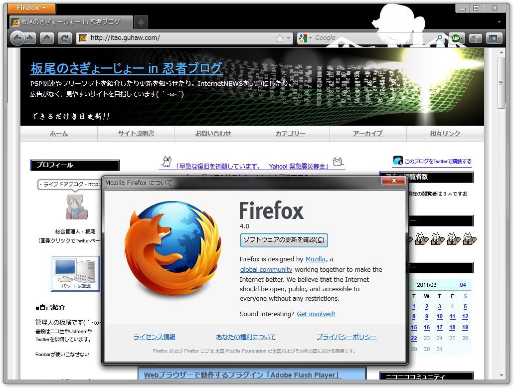 ついにメジャーバージョンアップ Firefox v4 が公開されました(`・ω・´)