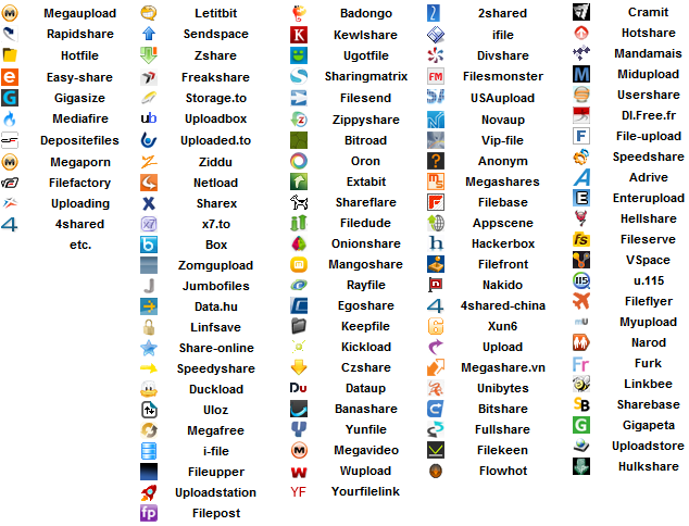 MEGAUPLOADやRapidshareなど、メジャー所からマイナー所まで対応した