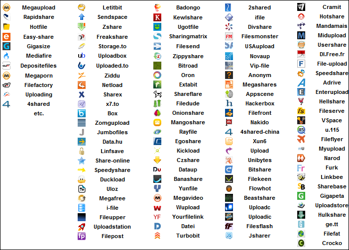 MEGAUPLOADやRapidshareなど、メジャー所からマイナー所まで対応した