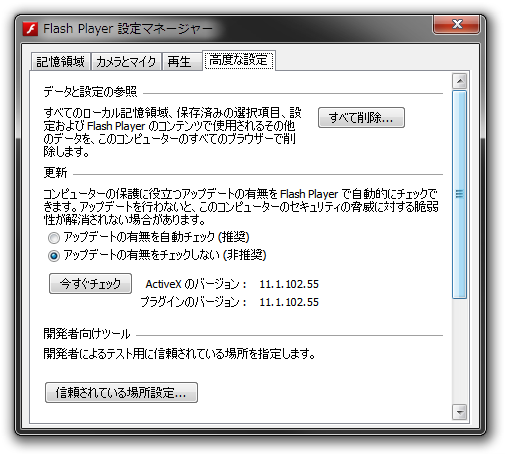 Adobe Flash Player v11.1.102.55 と、マルチプラットフォームで