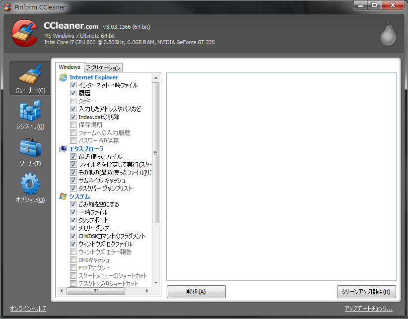 無償クリーニングソフト CCleaner v3.03.1366 を公開しました。