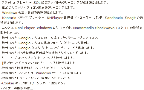 このソフトはキャッシュや履歴を削除する以外にも、レジストリ(PC細部)まで