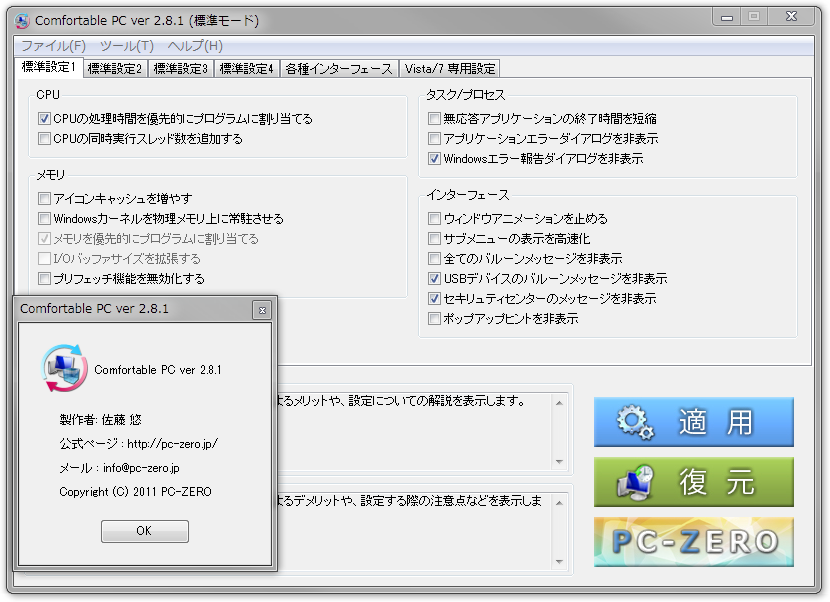 ■簡単な操作が特徴のWindowsカスタマイズソフト「Comfortable PC」v2.8.0 公開