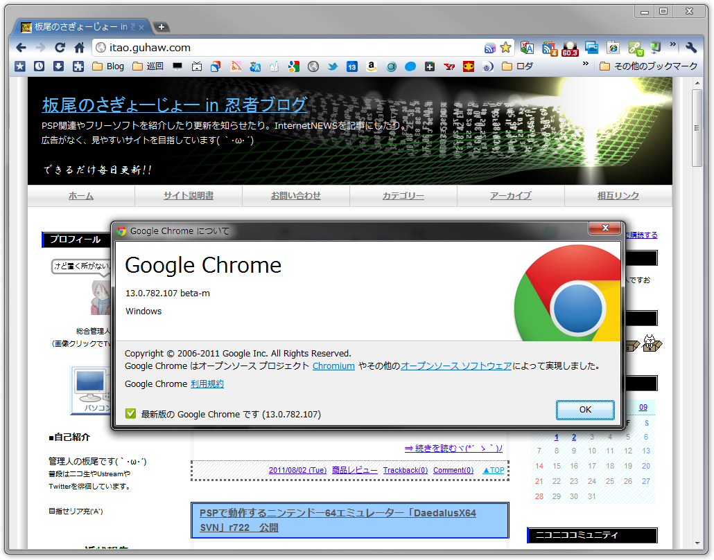 バージョンアップ! Google Chrome v13.0.782.107 が公開されました(`・ω・´)