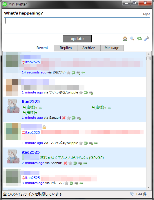 軽量Twitterクライアントソフト「MiniTwitter」v1.59 公開  リアルタイム使用時の不具合を修正