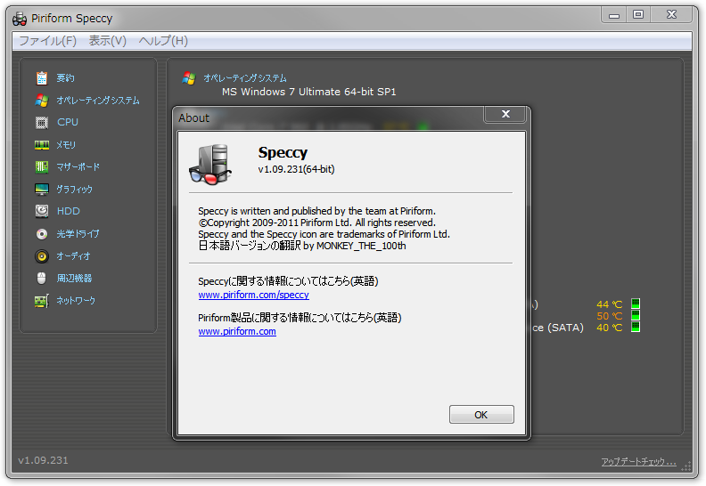 することができるフリーソフト Speccy v1.09 が公開しました(`・ω・´)