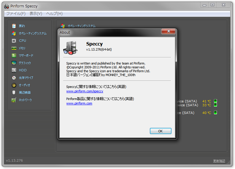 することができるフリーソフト Speccy v1.13 が公開しました(`・ω・´)
