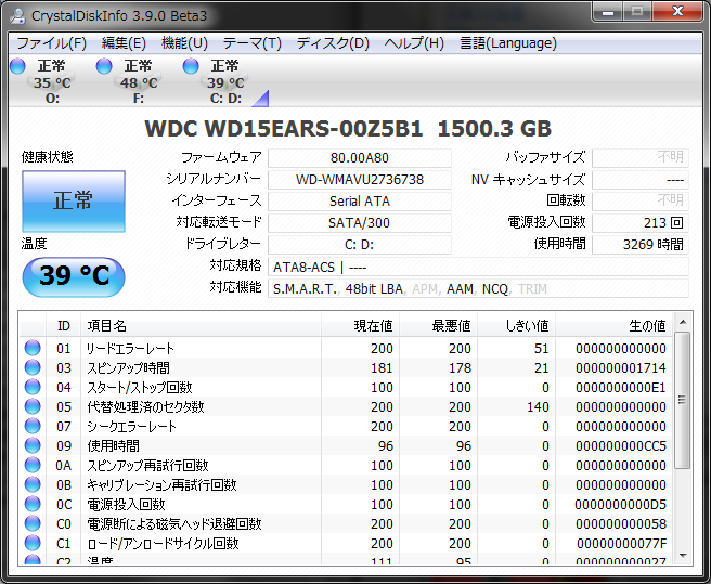CrystalDiskInfo の次期バージョン 3.9.0 beta3 が公開されました( `・ω・´)