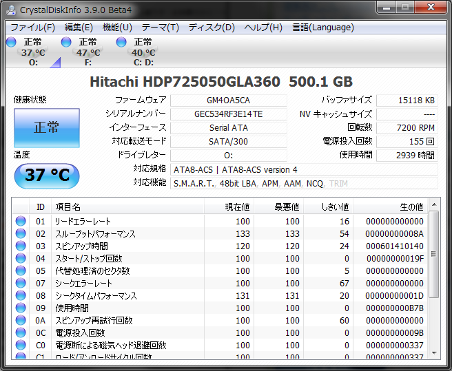 CrystalDiskInfo の次期バージョン 3.9.0 beta4 が公開されました( `・ω・´)