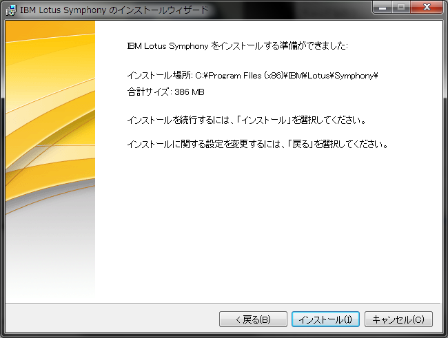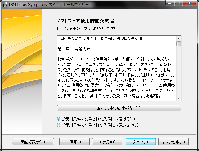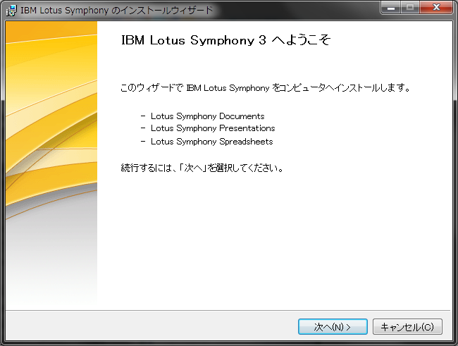 2.「IBM_Lotus_Symphony_w32_ja.exe」を実行します