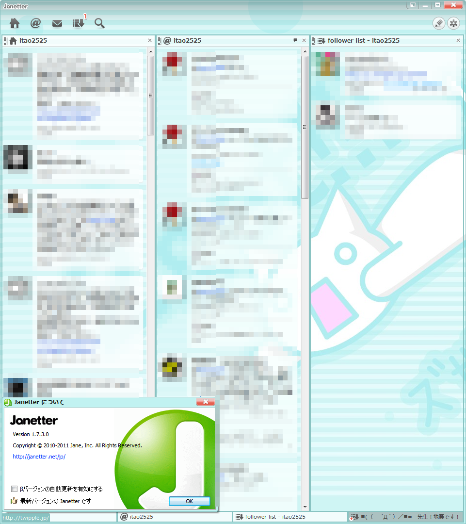 ■Jane製高性能Twitterクライアント、最新正式版「Janetter」v1.7.2.0 公開