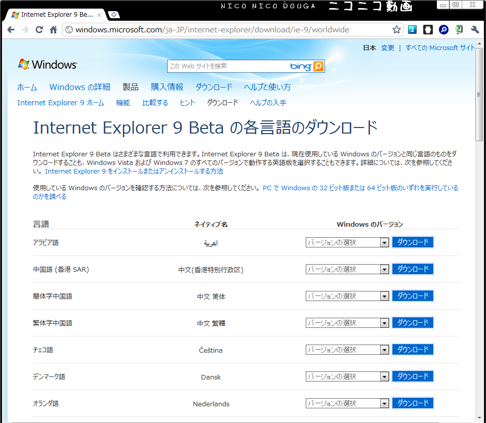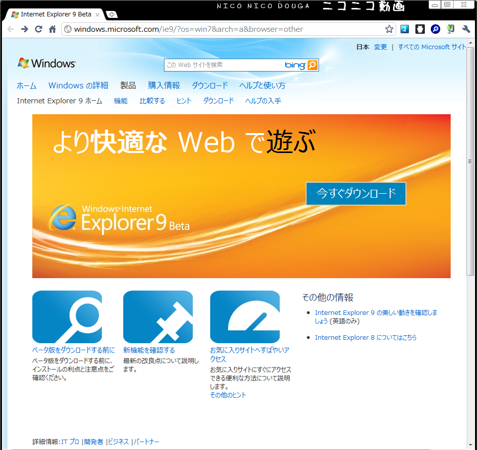まずはMicrosoftのIE9 betaのサイトへ行きます。
