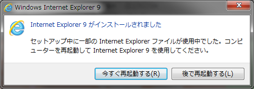 再起動するとIE8がIE9に変わっていました(`・ω・´)
