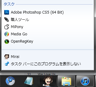 Windows7特有のジャンプリストという機能を利用し
