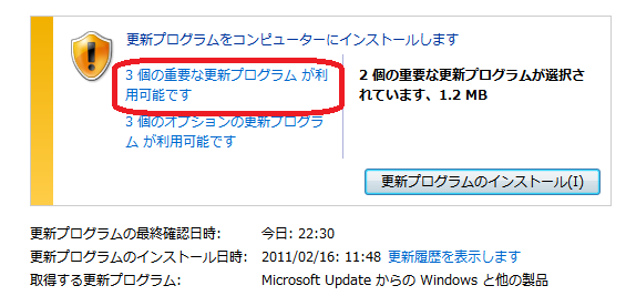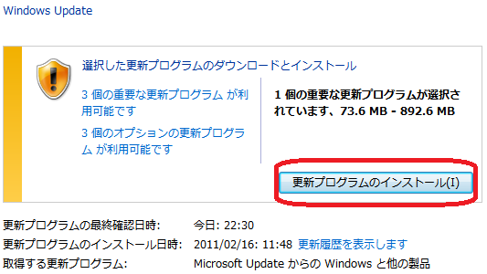 更新プログラムのインストールをクリック