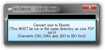 このソフトはUMDから吸い出したISOファイル(拡張子:.ISO)をEBOOT.PBPに