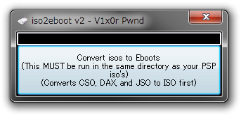 このソフトはUMDから吸い出したISOファイル(拡張子:.ISO)をEBOOT.PBPに