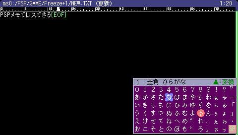 6.自動でPSPメモ帳が起動し、テキストの入力画面になります